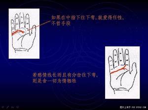 若一直前进至食指下,属于心灵之域,较注重精神的爱;进入中指下面,属肉体之爱,并不注重海誓山盟
