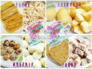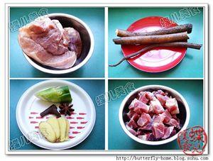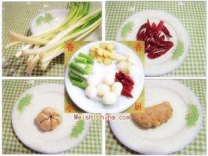 配料:白糖、盐、料酒、大葱、生姜、桂皮、八角、酱油