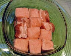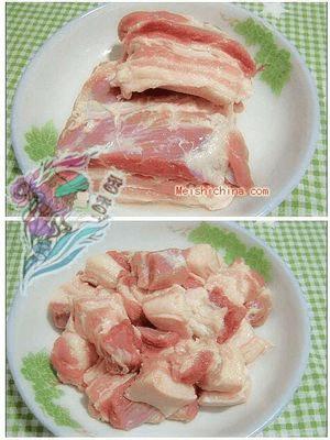 五花肉切块(不要太小块,也可以放沸水里烫一下)。[美食中国]