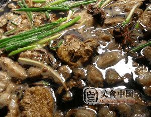3、改用微火,一直保持沸而不腾,烧至汤汁浓稠肉软烂,捡去姜、葱不要,起锅装碗即成。