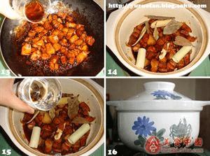4、我觉得用砂锅炖的菜很香,当然也可以用炒锅盖上盖焖或者是用高压锅节约时间,如果用高压锅焖肉,排气后转最小火大约15分钟即可