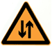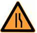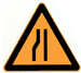 车行道两侧变窄主要指沿道路中心线对城缩窄的道路;此标志设在窄路以前适当位置。 车行道右侧缩窄。此标志设在窄路以前适当位置。 车行道左侧缩窄。此标志设在窄路以前适当位置。 此标志设在桥面宽度小于路面宽度的窄桥以前适当位置。