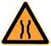 此标志设在路面的摩擦系数不能满足相应行驶速度下要求紧急刹车距离的路段前适当位置。行驶至此路段必须减速慢行。 此标志设在山区地势险要路段(道路外侧位陡壁、悬崖危险的路段)以前适当位置。 此标志设在山区地势险要路段(道路外侧位陡壁、悬崖危险的路段)以前适当位置。 此标志设在沿水库、湖泊、河流等堤坝路以前适当位置。