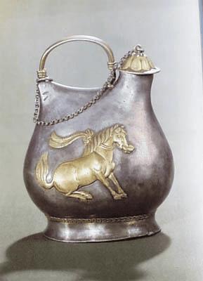 无马衔杯纹银壶(唐)