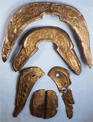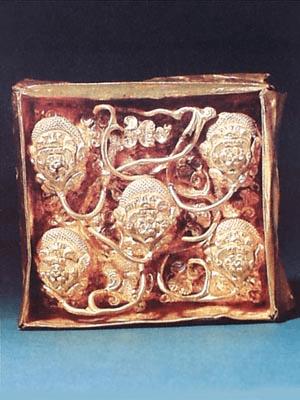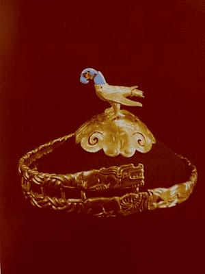 鹰形金冠顶、金冠带(战国)