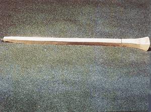 长26.5厘米,宽3.5厘米,重27.7克,1977年新疆维吾尔自治区托克逊县阿拉沟30号匈奴墓出土,新疆维吾尔自治区社会科学院考古研究所藏。