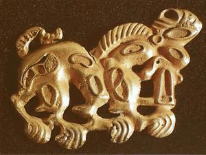 金双兽纹牌饰(战国)