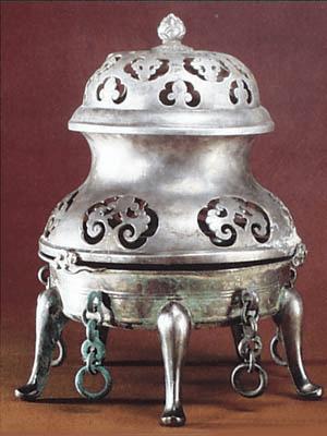 三层五足银薰炉(唐)