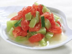 功效:黄瓜所含的黄瓜酸,能促进人体新陈代谢,排出毒素,所含维生素C的含量比西瓜高5倍,能美白皮肤,使其保持弹性,抑制黑色素的形成。而且吃黄瓜有助于化解炎症,还能抑制糖类物质转化为脂肪。