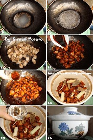 3、最后炒制牛肉的过程一直使用小火,炒糖色的时候注意不要炒太焦就行了;