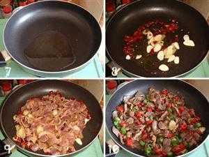 2、这道菜需要使用大火爆炒,并且炒制的时间不宜过长,全部变色脱生后即可熄火,久了牛肉就变色很棉,口感就不好了;