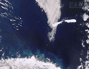 5、2005年4月,欧洲宇航局的照相机拍下了难得一见的精彩瞬间:位于大西洋南面的一座巨大冰山正在破裂。较早的卫星图像已经揭示此冰山出现了深度裂缝。