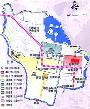 (老城宫城遗址、城市轴线变迁图)南京
