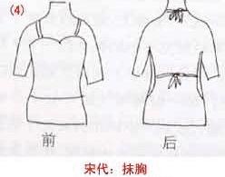 宋代的抹胸与之相比,则显得越发收敛。《西厢记》中的宋代女子,用抹胸裹肚,一根幼带围颈,一块菱中遮胸,掩起千般风情,万种妩媚,堪称保守。直至清朝末期随着洋纱洋布进入中国,西方的各种极富美学价值的胸衣才真正演绎在中国女子的身型之上。