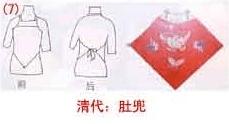 内衣在我国历史上各个时代有不同的称谓:汉朝内衣称为“抱腹”、“心衣”,魏晋称为“两当”,唐代称为“诃子”,宋代称为“抹胸”,元代称为“合欢襟”,明朝称为“主腰”,清朝称为“肚兜”,再后来就到了近代,则是我们至今仍可见到的“小马甲”了。