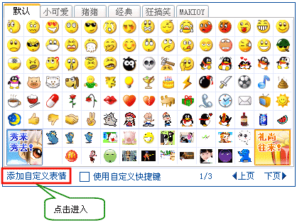 1.在QQ表情框左下方点击“添加自定义表情”,进入QQ表情管理器。
