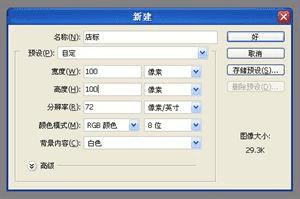 第2步: 在弹出的窗口中给文件命个名称“店标”,并设定文件的宽度和高度均为100像素,如图所示: