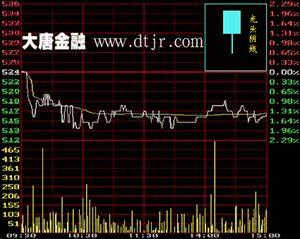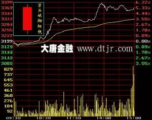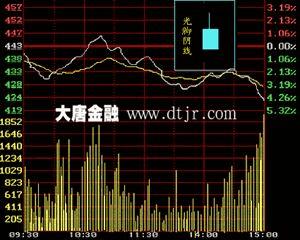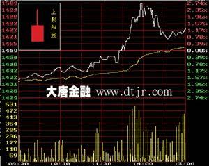 4、下面以带有成交量的分时走势图,分别说明数种典型的单个日K线图的形成过程和不同含义。分时走势图记录了股价的全天走势,不同的走势形成了不同种类的K线,而同一种K线却因股价走势不同而各具不同的含义。(资料来源:大唐金融 www.dtjr.com)