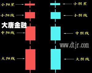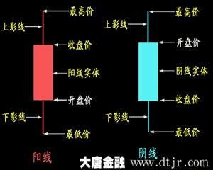 收盘价高于开盘价时,则开盘价在下收盘价在上,二者之间的长方柱用红色或空心绘出,称之为阳线;其上影线的最高点为最高价,下影线的最低点为最低价。 (资料来源:大唐金融 www.dtjr.com)