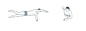 (3) 滑行打水:练习时要求闭气,两臂伸直并拢,头夹于两臂之间。