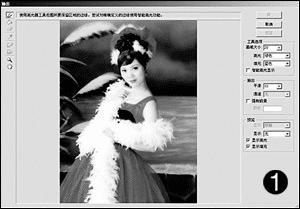 如果在前面的操作中选取的高光部分过多,就会造成人物上想保留的一些部分也被删除。即使前面没有复制图像也有办法进行补救,激活橡皮工具后按下Alt键,使用历史记录橡皮就可以对人物或背景的一部分进行恢复。
