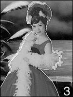 我们再来看看抽出滤镜的控制窗口,左侧是工具栏,右侧是控制栏。在抽出滤镜窗口中激活边缘高光器,并勾选智能高光显示复选框。按照(图2)所示勾选出人物的部分轮廓。智能高光显示是一项非常实用的功能,可以非常精确的选取人物与背景色对比较强烈的部分。接下来取消智能高光显示复选框的勾选,选择合适的画笔尺寸,勾选头发与围巾部分。要注意画笔尺寸不能太大否则一些我们需要保留的部分也会被去掉,并且高光部分要同时包括人物轮廓的内部和外部。如果高光部分过大可以使用橡皮工具擦除一部分高光,总之要确保人物轮廓选取的精确。最后使用填充工具对要抠取的部分进行填充,如(图3)所示。按下OK按钮,就是这么简单人物部分被完美的抠取出来。对背景层进行填充可以更好的观察抠图的效果,如(图4)所示。