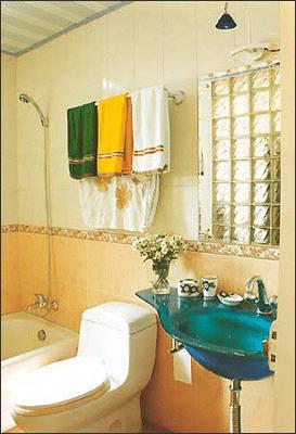 目前市场上的面盆主要有台盆和柱盆两种,二者在功能上没有区别,只是在形式上存在差异。台盆适用于开间较大的卫生间,显得庄重大气;柱盆适用于布局紧凑的卫生间,看上去精巧别致。浴缸的选择倾向于压克力缸,因为压克力型材质量轻,导热率低,易清洗,手感好,设计更符合人体造型,但价格高于钢板缸。