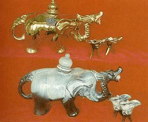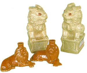 名称:卧狮、彩釉对狮对瓶产地:中国