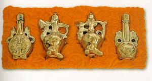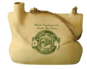 名称:淡黄陶印图袋形瓶产地:菲律宾