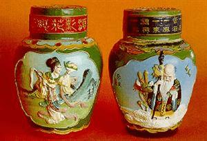 名称:彩绘仕女扁方体瓶产地:中国台湾
