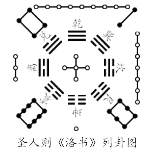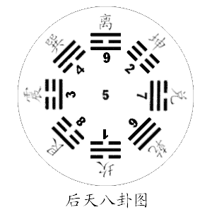 《洛书列卦图》为先天八卦但加入了《洛书》,因此而有了后天八卦的数。先天至后天为八卦的演变,其中卦位的变化原因有不同的见解,于此先不予理会,我们只需记得先后天卦位,后天卦数及《易经.说卦传》中的二句名言便可,《河图》及《横式先天八卦》只于参考。
