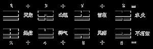 《易经.说卦传》曰:「帝出乎震,齐乎巽,相见乎离,致役乎坤,说言乎兑,战乎乾,劳乎坎,成言乎艮。」