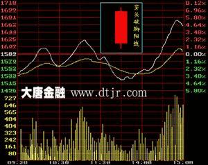同样为穿头破脚阳线,股价走势若表现出在全日多数时间内横盘或者盘跌而尾市突然拉高时,预示次日可能跳空高开后低走。 (资料来源:大唐金融 www.dtjr.com)