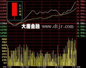 4、下面以带有成交量的分时走势图,分别说明数种典型的单个日K线图的形成过程和不同含义。分时走势图记录了股价的全天走势,不同的走势形成了不同种类的K线,而同一种K线却因股价走势不同而各具不同的含义。(资料来源:大唐金融 www.dtjr.com)