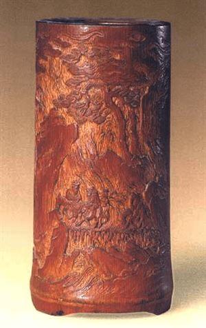 8、清早期,竹雕林泉隐士图笔筒,高17.2厘米,口径13.6厘米,清宫旧藏