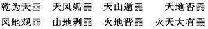 乾为天,天风女后,天山遁,天地否,风地观,山地剥,火地晋,火天大有。