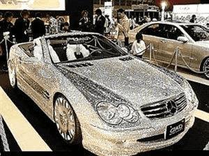 世界上有太多意想不到的事情了,像这辆全身都嵌满钻石的梅塞德斯-奔驰SL-Class,全车闪闪发光,灿烂得让人目瞪口呆。1954年,奔驰制造了带有鸥翼式车门的SL原型车。到今天,奔驰已经发扬了50年历史的“SLlegend”精神,而这辆镶满钻石的SL550就是50周年的纪念车型,不过奔驰没有说明钻石是真品还是仿钻。不论怎样,这辆光芒四射的奔驰车至少也值个几百万美元。