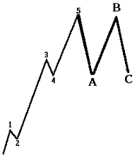 在这种调整类型中,浪B会创一个新高,最后的浪C会下降至浪A的开始处,甚至更低。