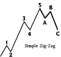 仅仅有一种模式是简单调整形态。这种形态叫作“之字型调整”。