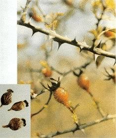 性状药材为花托和雌蕊发育而成的假果,倒卵形,长2~3.5cm,直径1~2cm。表面红黄色或红棕色,有突起的棕色点状毛刺残基。顶端有盘状花萼残基,中间有黄色柱基,下部渐尖。质硬,切开后内表面密生淡黄色有光泽的绒毛,内含小瘦果30~50粒,瘦果扁纺锤形,无臭,味甘、微涩。
