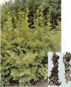 来源为毛茛科植物升麻Cimicifuga goetida L. 的根茎。