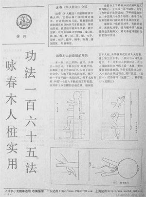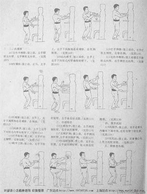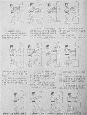 咏春拳木人桩实用功法的方法分析 来源:www.45fan.com 2016-07-04 09:28:02 咏春拳木人桩实用功法的方法分析 作者:佚名 文章来源:不详 咏春《木人桩法》创自峨眉派五梅大师,它是咏春门高级搏击拳术,对此桩的练习法,最重要的是得 到相当时日的学习才能奏效,练桩的目的,能使练习者身手灵敏,桥手坚实,此中包括拳法中的擒、拿、 挂、捎、插、抛、挤、标、顶、撞、七字。穿桥、伏手、搭手、摊手、偷漏、撩阴虎尾,勾脚等法。下列 为咏春木人桩实用功法一百六十五法的扫描版,点击即可放大察看。 推荐阅读 八段锦之传统保健功法的方法介绍 有什么样的方法可以强壮身心? 十八种咏春拳手部防御动作的动作介绍 怎么样练严新气功功理功法。 七步玄风掌特绝手功法的详细介绍 小周天功法的详细介绍 陈安之超级成功法则的内容介绍 陈安之的成功法则有哪些? 如何练瑜伽调息功? 气功功法的方法介绍