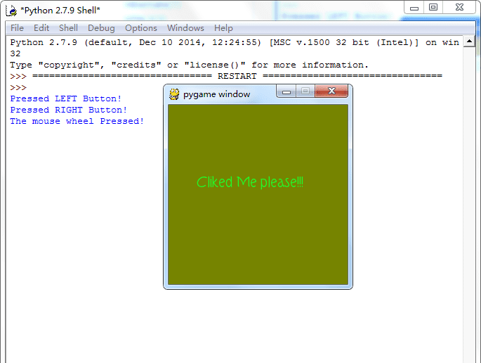 text = font.render('Cliked Me please!!!', True, (34, 252, 43))