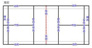 羽毛球场为一长方形场地,长度为13.40米,双打场地宽为6.10米,单打场地宽为5.18米。球场上各条线宽均为4厘米,丈量时要从线的外沿算起。球场界限最好用白色、黄色或其它易于识别的颜色画出。