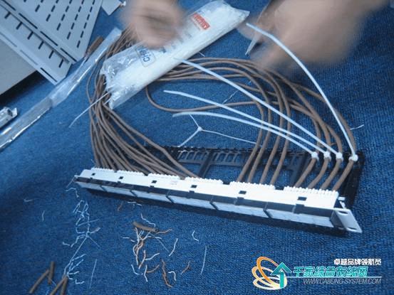 图七:塑料扎带将各线缆捆绑固定在配线架上