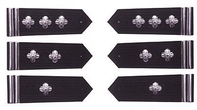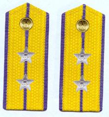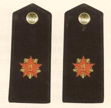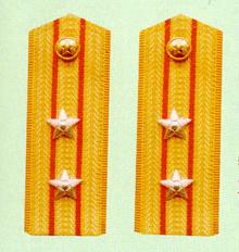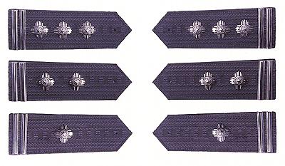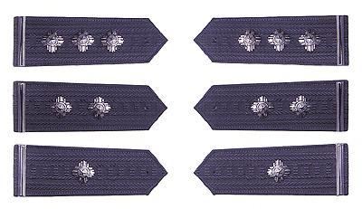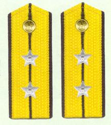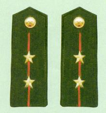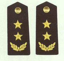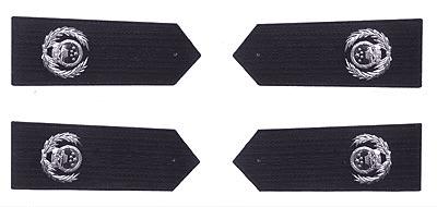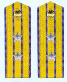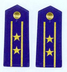 二级警监(中图):二级警监警衔标志缀钉二枚四角星花。