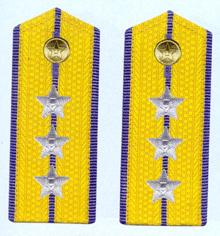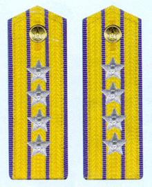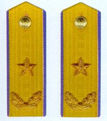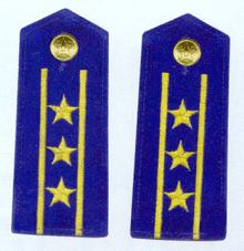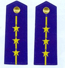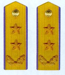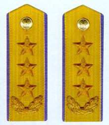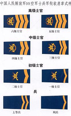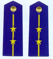 ②空军中将:为空军副大军区职军官的主要军衔。此外,它还是空军正大军区职和正军职军官的辅助军衔,即资历较浅的空军正大军区职军官和资深的空军正军职军官,也可被授予空军中将军衔。