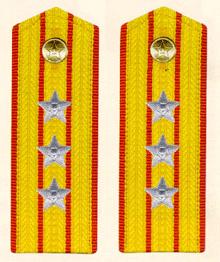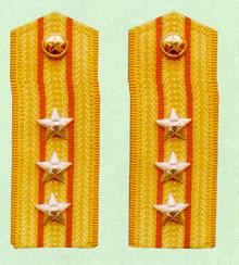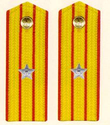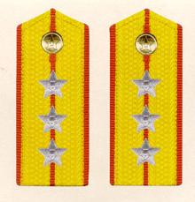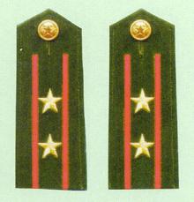 ③陆军少将:为陆军正军职和副军职军官的主要军衔。其中正军职包括集团军军长、政委,省军区和军级警备区司令员、政委及其他正军职军官;副军职包括集团军副军长、副政委、参谋长、政治部主任,省军区副司令员、副政委、参谋长、政治部主任及其他副军职军官。此外,陆军少将还是副大军区职和正师职军官的辅助军衔。