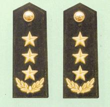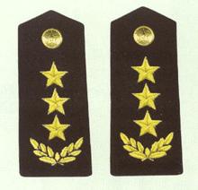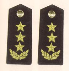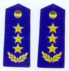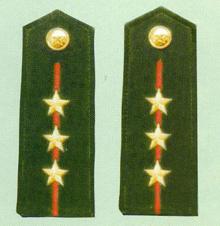 总警监(上图):部级正职。总警监警衔标志缀钉一枚橄榄枝环绕一周的国徽。