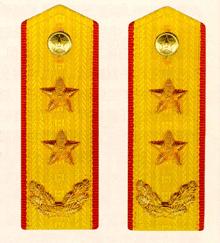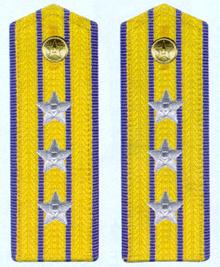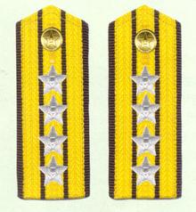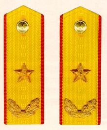 ②海军中将:为海军副大军区职军官的主要军衔。此外,它还是海军正大军区职军官和正军职军官的辅助军衔,即资历较浅的海军正大军区职军官和资深的海军正军职军官,也可被授予海军中将军衔。